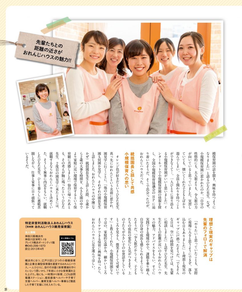 recruit 2020.4.10 ココキャリノートの小規模認可園特集に掲載されています! _ 就活ガイドブック【ココキャリノート】の小規模認可保育園特集におれんじハウス鶴見保育園が掲載されています! 昨年度、新卒でおれんじハウスに入社した保育士さんのインタビューが掲載されていますので是非ご覧ください! ココキャリ2021にも掲載されています☆ ➡≪ ココキャリ2021 ≫