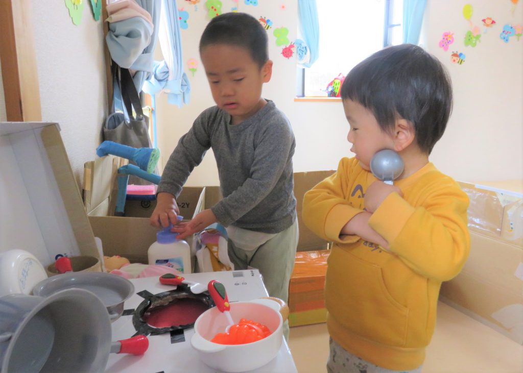 futamatagawa 2020.5.18 手洗いごっこ! 何をしているのか覗いてみると… 空になったハンドソープを上手に使って手洗いごっこ! 普段心掛けている生活の一部がおままごとに現れました。 生活の中で使っている空になったハンドソープや皿洗い用スポンジなど、そのままおままごとに取り入れることで子どもたちの遊びへの発展性や生活の流れの知識など様々な面で発見と成長を感じることができ楽しい見立て遊びが出来ました! ——————– おれんじハウスはSNSも更新しています! ≪ Instagram ≫ ≪ Twitter ≫ ≪ facebook ≫